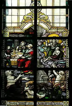 ![]() Matthew 5:3 depicted in the window of a Trittenheim church | |
