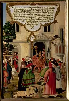 Illustration of Christ's teaching in Matthew 7:15, "Beware of false prophets", a section of wing panel from the Mompelgarter Altarpiece.