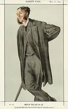In Culture and Anarchy, Arnold identifies himself as a Liberal and "a believer in culture" and takes up what historian Richard Bellamy calls the "broadly Gladstonian effort to transform the Liberal Party into a vehicle of political moralism."[32][33] Arnold viewed with skepticism the plutocratic grasping in socioeconomic affairs, and engaged the questions which vexed many Victorian liberals on the nature of power and the state's role in moral guidance.[34] Arnold vigorously attacked the Nonconformists and the arrogance of "the great Philistine middle-class, the master force in our politics."[35] The Philistines were "humdrum people, slaves to routine, enemies to light" who believed that England's greatness was due to her material wealth alone and took little interest in culture.[35] Liberal education was essential, and by that Arnold meant a close reading and attachment to the cultural classics, coupled with critical reflection.[36] Arnold saw the "experience" and "reflection" of Liberalism as naturally leading to the ethical end of "renouncement," as evoking the "best self" to suppress one's "ordinary self."[33] Despite his quarrels with the Nonconformists, Arnold remained a loyal Liberal throughout his life, and in 1883, William Gladstone awarded him an annual pension of 250 pounds "as a public recognition of service to the poetry and literature of England."[37][38][39]