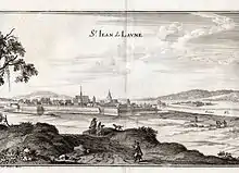 The attention of the Imperials turned to the Rhine in 1635. After the open outbreak of hostilities with France, Gallas and his troops crossed the river at the recently captured Philippsburg in May. He captured most of the Palatinate with Kaiserslautern as well as Worms and started to besiege Mainz in summer. At the approach of a French-Weimar relief force under Bernhard and Cardinal La Valette, Gallas retreated to harass them with light cavalry and to cut off their supplies. This proved successful, most of the French army perished because of sickness or hunger, or it dissolved on its retreat to Metz. The siege of Mainz was renewed and successfully concluded in December while Gallas advanced via Saarbrücken into Lorraine. He joined forces at Dieuze with the exiled Duke of Lorraine who urged to recapture his capital Nancy. Yet Gallas preferred to entrench his army at the Seille to give his troops some rest.[19][20] An outbreak of the plague and shortage of supplies forced him to retreat into Alsace where he set up winter quarters at Saverne.[21][20]