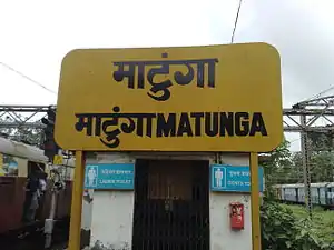 Matunga is a railway station on the Central line of the Mumbai Suburban Railway network. It should not be confused with the nearby Matunga Road railway station on the Western Line. As per the Limca Book of Records 2018, Matunga is the first railway station in India in suburban category to be completely staffed by women.[1]