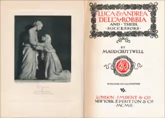 In 1897 Cruttwell began to publish articles on Renaissance art in art journals; her first monograph, on Luca Signorelli, was published in London in 1899.[9] This was followed by a work on Mantegna (London, 1901).[10] In her third book Luca and Andrea della Robbia and their Successors (London, 1902), she demonstrated the difference and superiority of the work of Andrea della Robbia as compared to that of his nephew Luca.[11] Her work on this book involved extensive research in collections throughout Europe, and led to her reassigning many attributions.[12] The book was generally well received, although it was heavily criticized by the anti-Morrellian art historian Wilhelm von Bode.[13] Her next two books on Verrocchio (1904) and Pollaiuolo (1907) (of which Bode wrote a further severe review) were issued by a publisher (Arthur Strong) who had quarrelled with Berenson, but Cruttwell sought successfully to ensure that her good relationship with the Berensons continued.[14]