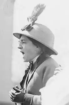 One of her visible acts of protest was as "heckler",[7] especially at presidential candidate speeches in 1912, when she was known to shout "What about woman suffrage?" from the audience.[8] She was often ejected for this act, fined,[9] and at least once convicted of creating a disturbance at a public meeting, and given a suspended sentence.[10][11] In 1917 she picketed the White House as part of the Silent Sentinels in a campaign to get the Democratic Party to endorse women's suffrage. She was arrested and sentenced to 60 days at the Occoquan Workhouse, where she was among the eleven women who unsuccessfully requested political prisoner status.[12][13]