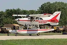 Based on the Maule M-4, it is a high-wing, strut-braced monoplane of conventional configuration, available with tailwheel or optional tricycle wheeled undercarriage[1] and frequently used as a floatplane with twin floats. The basic M-7 has a longer cabin than its predecessors the M5 & M6, with two seats in front, a bench seat for up to three passengers behind them, and (like the M-6) an optional third row of "kiddie seats" at the rear.[2] Extra cabin windows can be fitted if the "kiddie seats" are to be used. The MX-7 uses the same fuselage as the M-6,which is a modified M5 fuselage but the same wing span as the M-5,[2][3] and incorporates the increased fuel tankage, Hoerner-style wingtips and five-position flaps designed for the M-7.[4]