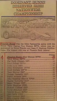 1. "Crossle Newsletter - Maurice Dunne in Van Dieman RF79 triumphs over Crossle in Championship" (PDF). Archived from the original (PDF) on 23 March 2013. Retrieved 27 July 2021.