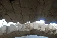 Judging from the size of the arch, there must be more arches of the former bridge. The other arches are still buried under the urban fabric, including other valuable historical buildings, and presently they have not been excavated. The size of the main underground compartment of the two arches is 13.80 m × 6.50 m (45.3 ft × 21.3 ft) and the dimension of the adjacent compartment of the tomb to the northeast is 3.60 m × 2.80 m (11.8 ft × 9.2 ft). The depth of the foundation of the arch is 5.40 m (17.7 ft) and the depth of the highest point is 1.50 m (4.9 ft) with respect to ground level.[3] For structural performance, the voussoirs were jointed with lead-coated iron fittings. On the wall adjacent to the tomb, a hectogram had been carved. There are some small finds, which are thought to belong to a yet unearthed bath, and four coins of the Rashidun Caliphate.[5]