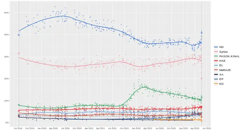 - ↑ "Γιατί δεν λειτούργησαν οι «σεισμογράφοι» των δημοσκοπήσεων;". AthensVoice (in Greek). 23 May 2023. Retrieved 10 August 2023.
