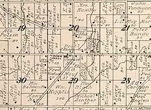 May Corner is named after the May farm, which stood on the south side of the intersection.[3] It was owned by Sam G. May (1839–1910), and later by his widow Janet "Jennie" May, née McFarlane (1853–1926).[4]