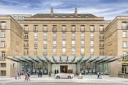 The Berkeley, which was built on its present site in 1972 in Knightsbridge, has been completely renovated over the last few years. In 2017 a major contemporary front façade face lift was unveiled. It was designed by The Pritzker prize-winning architect Richard Rogers.[11] Michelin starred chef Marcus Wareing has his famous restaurant at the Berkeley, and it is home to the Blue Bar. Hong Kong-based designer Andre Fu completed a series of new pavilion penthouse suites at the hotel in 2018.[12]