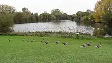 Mayesbrook Park is a 43 hectare[1] public park in Dagenham in the London Borough of Barking and Dagenham. It is owned and managed by the borough council. The southern end, which is mainly a large lake, is a Local Nature Reserve.[2][3] The area covered by the park was once part of the historic Manor of Jenkins, seat of the Fanshawe family. For reasons which remain obscure, the park is sometimes nicknamed "Matchstick Island".[4]