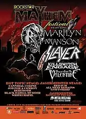 Band lineup as released by the press release from the Mayhem Festival website and bands page of the Mayhem Festival website.[1][2]