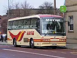 Mayne Coaches[1] is a coach operator with depots in Manchester and Warrington. Administrators were appointed to the business, following an insolvency notice issued on 14 February 2022.[2] Mayne Coaches now operates under the Go Goodwins Group of Eccles, Manchester. The company has no connection to Maynes Coaches, Buckie Scotland.