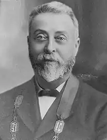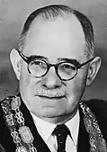 When the City of Auckland was formally incorporated in 1871, it covered a much smaller area of 623 acres (2.52 km2). Its municipal council was led by a chairman, Walter Lee. Soon afterwards the office of Mayor of Auckland was created. At first, the mayor was elected by the councillors. In 1875, Benjamin Tonks was the first mayor elected at large, i.e. by the ratepayers.[1] There were 39 holders of the position. The longest-serving was Sir Dove-Myer Robinson, who held the post for 18 years, and was the first person to serve non-consecutive terms.[2] There were two female Mayors; Catherine Tizard in 1983 and Christine Fletcher in 1998.