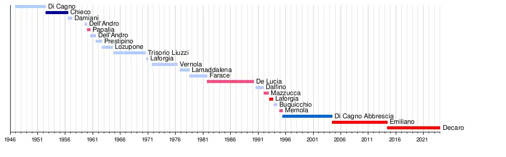 | 6 | Pasquale Prestipino | 31 July 1961 | 5 September 1962 | DC |