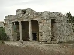 The Mazor Mausoleum (Hebrew: מאוזוליאום מזור) is one of the best preserved Roman buildings in Israel, located in El'ad. The Mausoleum, which is the only Roman era building in Israel to still stand from its foundations to its roof, was built for an important Roman man and his wife in the 3rd century AD. Their identities remain a mystery but one can still see the remnants of two sarcophagi in the mausoleum.