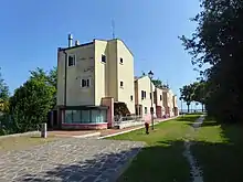 Giancarlo De Carlo was an architect who belonged to a new generation of architects who wanted to develop a new type of architecture, one which was better suited to local social and environmental conditions and where man "is not reduced to an abstract figure". He theorized a more democratic and open "participatory architecture". In 1979 he built a brightly painted housing neighbourhood to help to repopulate the island.[1]