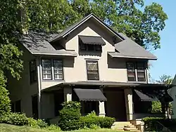 Housing styles in McClellan Heights tend to follow a free-form eclecticism that was characteristic of the period rather than a desire to recreate classical architectural styles.[2] Elements of past styles were utilized here, but they were employed in a less literal fashion by using a few details to suggest rather than recreate the earlier forms. The revival styles that were more commonly used in the neighborhood were Tudor Revival and Mediterranean Revival as well as the Colonial Revival forms from New England to Dutch Colonial and Georgian. The Prairie School style is somewhat ubiquitous throughout the neighborhood, but again, not in a literal sense. There are only a few textbook examples of the style in McClellan Heights. Instead, it found its expression in the use of broad roofs, horizontal window openings, and placing upper story windows just below the eaves. Its use was adapted by combining the Prairie School style with the revival styles as well as two other typically American styles that are found throughout the neighborhood, American Craftsman and American Foursquare.