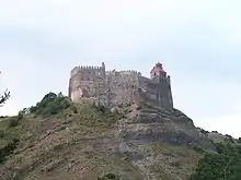 Mdzovreti fortress (Georgian: მძოვრეთის ციხე) is a fortress in Georgia, Shida Kartli, in the valley of the river Dzama, in the village Ortubani, Kareli Municipality. The fortress is situated on the right bank of the river Dzama. The complex includes: a church, a bell-tower, a castle and several houses and agricultural places.