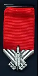 The medal was designed by Dan Reisinger, on the obverse there are six crossed swords and between them an olive branch. the reverse is the same.