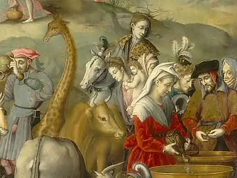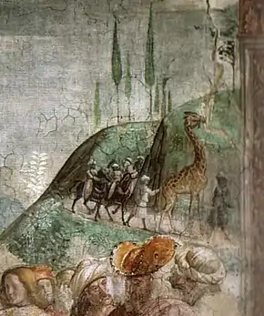 ![]() A giraffe depicted in Ghirlandaio's The Adoration of the Magi between 1485 and 1490 | |