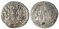 Emperor Kanishka was a great patron of Buddhism; however, as Kushans expanded southward toward the Indian subcontinent the deities of their later coinage came to reflect its new Hindu majority.[26][27]