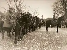 - ↑ Medininkai were within the sector operated by the Soviet 36. Cavalry Division, which advanced along the Boruny – Oszmiana – Medininkai – Vilnius axis. Once it crushed minor Polish resistance on Sep 17, on Sep 18 it was ordered to seize Vilnius by the end of the day. However, the division reached Murowana Oszmianka only. It resumed the advance since early morning hours of September 19 and reached Vilnius by mid-day, Czesław Grzelak, Kresy w czerwieni, Warszawa 2008, ISBN 978-83-89935-61-8, p. 222