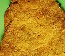Medusinites is a genus of disc shaped fossilised organisms associated with the Ediacaran biota. They have been found in rocks dated to be 580 to 541 million years old.[1]