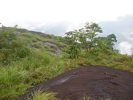 It is noted for a huge rock that rises more than 4000 feet - hence the name 'Para' (which means 'rock' in the Malayalam language) - and has about two acres of evergreen forest on top of it. The rock itself covers an area more than 500 acres. The mountain's name derives from the apparent resemblance of its rocky surface to fish scales.[1] The mountain's peaks are often covered in mist on rainy days but on clear days, the lower Periyar area, Bhoothathankettu and even Ernakulam may be visible from the peaks vantage points. Meenuliyan para is located 47 km from Muvattupuzha and 51 km from Thodupuzha. Meenuliyan para can be reached only by a pedestrian path for about 3 km from Pattayakkudy, in Vannappuram Panchayath in Idukki district. Cochin Port and parts of Thrissur district can also be seen from top of the Meenuliyan para.[2]