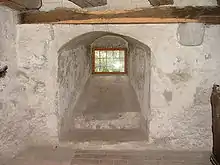 Window of the Guards' Room at the castle. The walls are nearly 3m thick which creates this large opening to a small window