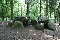 The group of Neolithic graves in the forest south-west of Haldensleben is the largest concentration of megalithic tombs in central Europe. In an area of about 5 by 5 kilometres, there are more than 80 graves, some in good condition. The location of about 50 more graves are known; some have been destroyed, or consist of one stone or loosely scattered stones.[1][2][3][4]