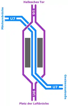 Structure of subway lines U6 and U7 at Mehringdamm.