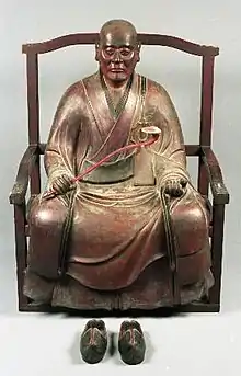 ![]() Wooden statue of Meihō Sotetsu held at the temple Yōkōji in Ishikawa Prefecture. It is believed to have been made during the Northern and Southern Courts Period (1336-1392). It was designated an Ishikawa Prefecture Cultural Property in 1993. | |