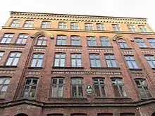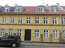Smedeforeningens Stiftelse/No. 17 is from 1883 and was built to provide affordable housing for master smiths in difficult circumstances. The facade features a plaque with a bronze relief portrait of the association's president, A. W. Holm, an anchor smith.[1]