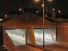 Meir is situated along the A50. At the centre sits the junction with the A520. Once a notorious traffic jam site, a tunnel was built in 1997 to take the A50 underneath. The twin tunnels were walled with ceramic panels which were reported to have cost about £1,000 each when they began to come loose through rusting of their attachments after a few years.