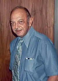 Blanc was a regular on the NBC Red Network show The Jack Benny Program in various roles, including voicing Benny's Maxwell automobile (in desperate need of a tune-up), violin teacher Professor LeBlanc, Polly the Parrot, Benny's pet polar bear Carmichael and the train announcer. The first role came from a mishap when the recording of the automobile's sounds failed to play on cue, prompting Blanc to take the microphone and improvise the sounds himself. The audience reacted so positively that Benny decided to dispense with the recording altogether and have Blanc continue in that role. One of Blanc's characters from Benny's radio (and later TV) programs was "Sy, the Little Mexican", who spoke one word at a time.[12] He continued to work with Benny on radio until the series ended in 1955 and followed the program into television from Benny's 1950 debut episode through guest spots on NBC specials in the 1970s.