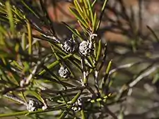 - ↑ Craven, Lyn A.; Lepschi, Brendan J.; Broadhurst, Linda; Byrne, Margaret (2004). "Taxonomic revision of the broombush complex in Western Australia (Myrtaceae, Melaleuca uncinata s.l.)". Australian Systematic Botany. 17 (3): 263. doi:10.1071/SB04001.