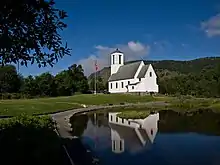 Melbu Church (Norwegian: Melbu kirke) is a parish church of the Church of Norway in Hadsel Municipality in Nordland county, Norway. It is located in the village of Melbu on the island of Hadseløya. It is one of the churches for the Melbu parish which is part of the Vesterålen prosti (deanery) in the Diocese of Sør-Hålogaland. The white, wooden church was built in a long church style in 1938 using plans drawn up by the architect Harald Sund. The church seats about 250 people.[1][2][3]