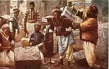 The courtyard of the Tomb of Helena of Adiabene was originally a meleke stone quarry, and the staircase once a ramp upon which the blocks extracted were hauled.[11] Of the four types of limestone found in the Jerusalem region, two were used in building during the Islamic period in Palestine: meleke and mizzi, the latter being a harder stone, also known as "Palestinian marble".[12]