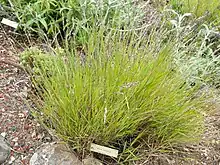 The species is perennial and caespitose with culms being 80–100 centimetres (31–39 in) long. The leaf-sheaths are tubular. Leaf-blades are stiff and are 10–20 centimetres (3.9–7.9 in) long and 2–4 millimetres (0.079–0.157 in) wide. They also have scabrous surface.[1]
