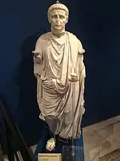 A Temple of Proserpina stood on the hill of Mtarfa, outside the walls of Melite. Only a fragment of a marble column and parts of a Punic cornice remain from this temple, but its existence is known from the Chrestion inscription, an inscription discovered in 1613 recording that the temple was renovated during the reign of Augustus.[15] A statue of Saint Nicholas now stands on the site of the temple.[16]