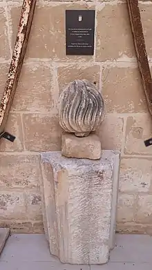 According to Giovanni Francesco Abela, many architectural fragments from Melite were still visible in Mdina in the mid-17th century. From the late 17th to the 19th centuries, some marble columns and other remains from the temples of Apollo[20] and Proserpina,[21] and other buildings from Melite, were taken and sculpted into decorative elements for various houses and churches, including St. Paul's Cathedral in Mdina, St. Paul's Grotto in Rabat and the Franciscan Church of St Mary of Jesus, the Church of the Holy Souls, Auberge d'Italie[22] and the Castellania in Valletta.[23]