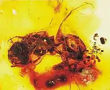 Melittosphex burmensis is an aculeate wasp that was formerly considered one of the two oldest-known species of bees. The species was described from an inclusion in Burmese amber in the year 2006 by George Poinar Jr., a zoologist at Oregon State University. The fossil was found in a mine in the Hukawng Valley of northern Myanmar and is believed to date from the Cretaceous Period, 100 million years ago.[1]