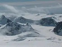 Melnik Ridge (Melnishki Hrebet \'mel-nish-ki 'hre-bet\) is a narrow ridge rising to 696 m in eastern Livingston Island in the South Shetland Islands, Antarctica bounded by Kaliakra Glacier to the north and west, and Struma Glacier to the south, and linked to Bowles Ridge by the 575 m high Yankov Gap. The ridge is 2.2 km long in the east-west direction, featuring Sliven Peak and Etropole Peak, with the summit Melnik Peak forming its west extremity. It has partly snow-free southern slopes. The ridge was first surveyed by Lyubomir Ivanov and Doychin Vasilev from Camp Academia on 28 December 2004, as part of Tangra 2004/05 topographic survey.[1]