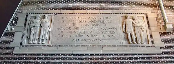Memorial Stadium, also known as the "Brick House", was an outdoor athletic stadium in the north central United States, located on the campus of the University of Minnesota in Minneapolis. It was the home of the Minnesota Golden Gophers football team for 58 seasons, from 1924 through 1981. Prior to 1924, the Gophers played at Northrop Field.