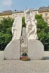 The memorial against war and fascism (German: Mahnmal gegen Krieg und Faschismus) is a work by the Austrian sculptor Alfred Hrdlicka.[1] It has been standing since 1988 on the Albertinaplatz in Vienna – named after Helmut Zilk in 2009 – opposite the Palais Archduke Albrecht and the back of the Vienna State Opera. As a walk-in monument, it is intended to serve as a reminder of the darkest epoch in Austrian history. It is dedicated to all victims of war and fascism.