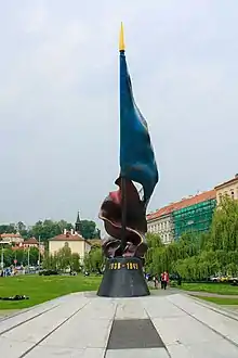 The Memorial of the Second Resistance Movement (Czech: Památník obětí a vítězů druhého odboje)[1] or Resistance Flag Monument in Prague, Czech Republic, is a monument of the flag of the Czech Republic. It is in dedication to the second resistance movement to the Nazi occupation of the Czechoslovakia from 1938 to 1945. It has an inscription with 'Postůj v úctě před památkou obětí a vítězů druhého odboje českého národa za svobodu vlasti' in English it is ‘Stay a moment in respect for the victims and winners of the Second resistance of the Czech nation for liberty of the homeland.’[2]