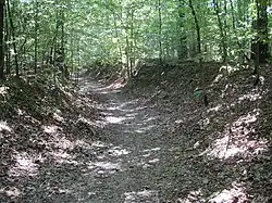 The Memphis to Little Rock Road-Village Creek Segment is a preserved segment of the historic Memphis to Little Rock Road military road in Cross County, Arkansas. Located entirely within Village Creek State Park, this 1.5-mile (2.4 km) segment of roadway is one of the best-preserved portions of the military road built in 1828. The roadway portion, in parts set in dramatically deep cuts in the hills, extends from Village Creek in the east to the western boundary of the park, and is accessible today as a hiking trail.[9]
