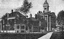 Menominee County was created in 1863, and included at the time the land that now covers Menominee, Iron, and Dickinson Counties.[3] The county seat was established in Menominee, and a clerk's office and jail were quickly built.[4] In 1874, county residents decided to build a courthouse, and bonds were sold to fund the construction.[5] A new plot of land in Menominee was found and purchased for the courthouse,[5] and Chicago architect Gurdon P. Randall was hired to design the new building.[2] Contractors Cummings and Hagan were hired to build the courthouse,[2] and construction began in 1874.[5] The building was completed in 1875 at a cost of $29,680.[2] The building originally housed a jail on the first floor, county offices on the second floor, and the courtroom on the third floor.[2]