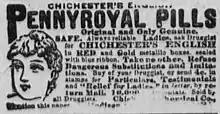 The pennyroyal plant has also been used as an emmenagogue and an abortifacient.[29] Chemicals in the pennyroyal plant cause the uterine lining to contract, causing a woman's uterine lining to shed. Women who struggle with regulating their menstrual cycle or suffer from a cystic ovary syndrome may choose to drink pennyroyal tea. Pennyroyal tea is subtle enough to induce menstrual flow with minimal risk of negative health effects. More concentrated versions of the plant, such as the oil, are much more toxic and will likely force a miscarriage if ingested by a pregnant woman.[30] Since the U.S. Congress passed the Dietary Supplement Health and Education Act in October 1994 all manufactured forms of pennyroyal in the United States have carried a warning label against its use by pregnant women, but pennyroyal is not regulated by the U.S. Food and Drug Administration.[31]