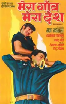 Mera Gaon Mera Desh (transl. My village, my country) is a 1971 Indian action drama film, directed by Raj Khosla, written by Akhtar Romani, and starring Dharmendra, Asha Parekh in lead roles and Vinod Khanna as the villain. It was a box office success.[1] The film contains many hit songs including: "Apni Prem Kahaniyan", "Aaya Aaya Atariya Pe Koi Chor", "Sona Lai Ja Re", "Kuch Kehta Hai Yeh Saawan" and "Maar Diya Jaye Ke Chhod Diya Jaye". The film was remade in Telugu as Manchi Babayi.